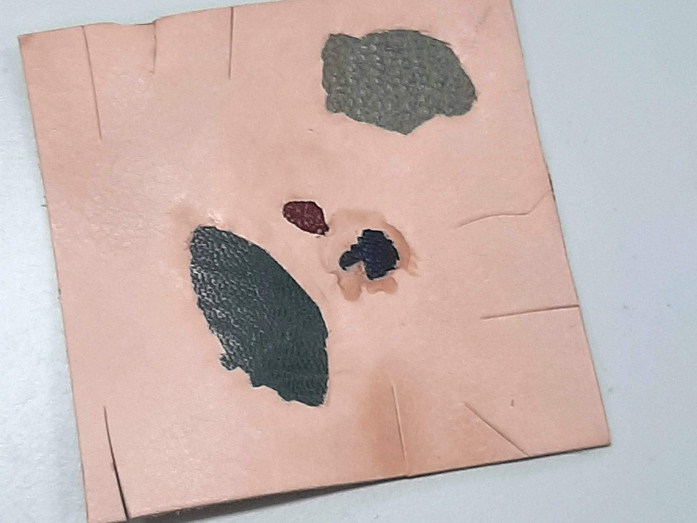 All acted rather successfully although the Klucel G was not strong enough to hold the tyvek to the leather sample. The Klucel G used for the leather fill also bled through to the front of the sample and stained the leather. I'm unsure if this was due to the Klucel G or the Leather which was used for the fill.