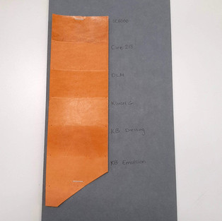 Friday we had the great opportunity to have a guest lecturer, Dr. Laurianne Robinet, who went over more of the science behind leather that morning. The afternoon was spent on looking at leather dressings, emulsions, and waxes. We took a sample piece of leather and coated sections of it with various coatings to see the differences between them.