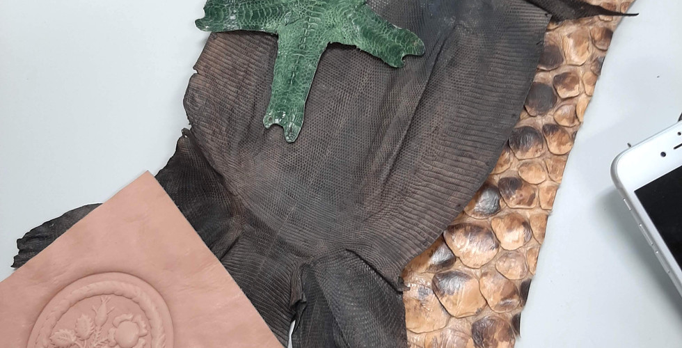 Vegetable tannins: add a drop of DI water to the leather scraps, remove excess water. Add two drops of 2% iron(iii)chloride. If the sample turns black, vegetal tannins had been used on the leather.